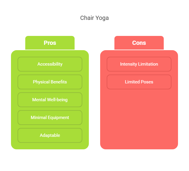 – **Intensity Limitation**: Chair yoga has a limited-intensity workout. You will not experience intense sweating as in traditional yoga.