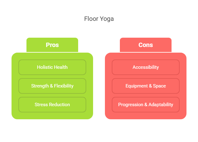 – **Floor Yoga**: Offers a wide range of poses; may require modifications for beginners or those with limited mobility.