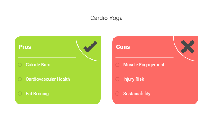 Strength Yoga’s holistic approach promotes long-term adherence and overall well-being, making it more sustainable over time. Cardio Yoga’s high-intensity nature may lead to burnout or injury, potentially affecting long-term sustainability.