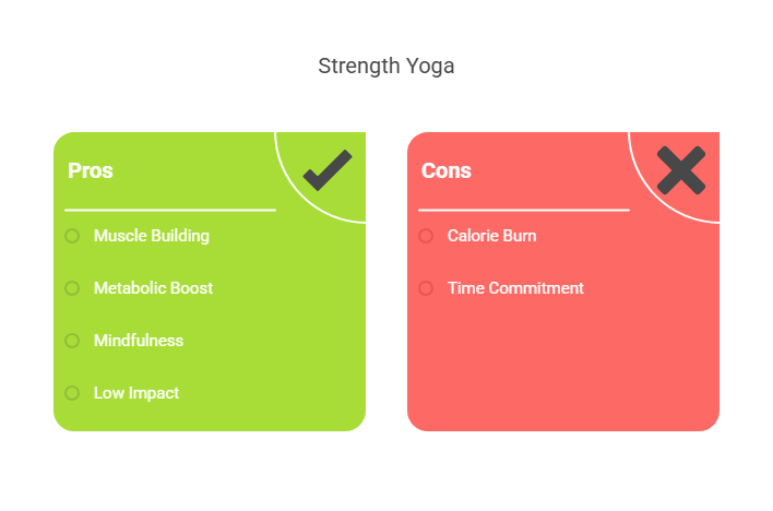 – **Muscle Engagement**: Less emphasis on building muscle mass compared to Strength Yoga.