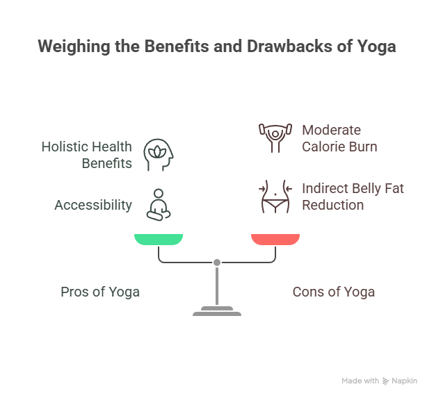 While Yoga can aid in weight management by improving flexibility and reducing stress, it may not be as effective for burning belly fat compared to more intense exercises like Pilates. Incorporating both practices can offer comprehensive benefits. ([eatthis.com](https://www.eatthis.com/yoga-or-pilates-for-belly-fat-loss/?utm_source=openai))