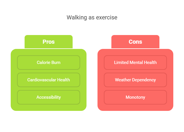 – **Weather Dependency**: Outdoor walking is subject to weather conditions, which can limit consistency.